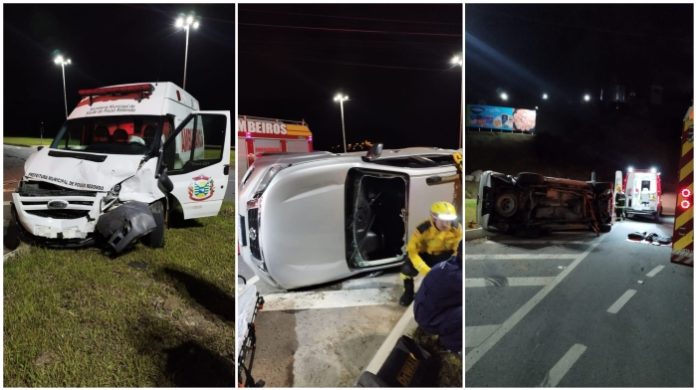 Segundo informações do Corpo de Bombeiros Militar, a colisão aconteceu por volta da 1h e envolveu uma caminhonete e o veículo de atendimento em saúde. Com o impacto, os dois automóveis sofreram danos significativos e chegaram a tombar na pista.