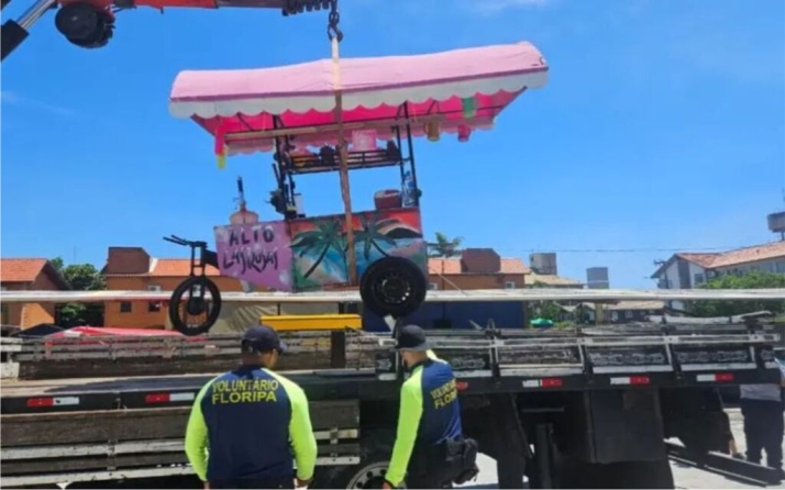 Em operações isoladas, como na Praia de Canasvieiras, a fiscalização de carrinhos e vendedores irregulares garantiu a retirada de estruturas que operavam fora das normas municipais.