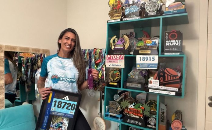 Em casa, cada canto reflete sua energia e gratidão, mas um espaço especial chama atenção: a estante onde Lilian guarda mais de 80 troféus e centenas de medalhas. Cada peça representa um desafio vencido, uma meta alcançada e, acima de tudo, uma inspiração para quem a acompanha.