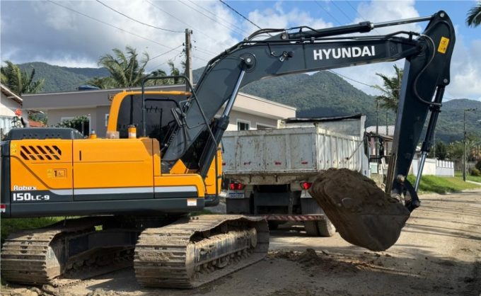 No bairro Sertão do Trombudo, as equipes concentram esforços na Estrada Geral do Sertão. O local recebe obras de drenagem pluvial, etapa essencial para garantir a qualidade e a durabilidade da futura pavimentação asfáltica.