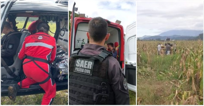 Conforme os socorristas, com o impacto, nove pessoas ficaram feridas, entre elas o piloto. Uma mulher, de 37 anos, apresentou o quadro mais grave. Ela sofreu politraumatismos e relatou dores na coluna e tórax. Ela foi conduzida pelo Saer da Polícia Civil até o Hospital São José, em Criciúma. Segundo a prefeitura, ela deve ser liberada ainda neste sábado (15).