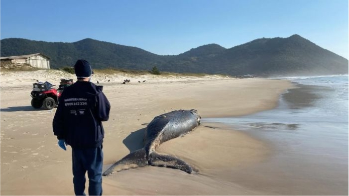 Na manhã de quarta-feira, um filhote de baleia-franca de cerca de 5,2 metros foi encontrado morto na Praia do Siriú, em Garopaba. O corpo já apresentava sinais de decomposição quando foi localizado por populares, que alertaram o Instituto Australis.