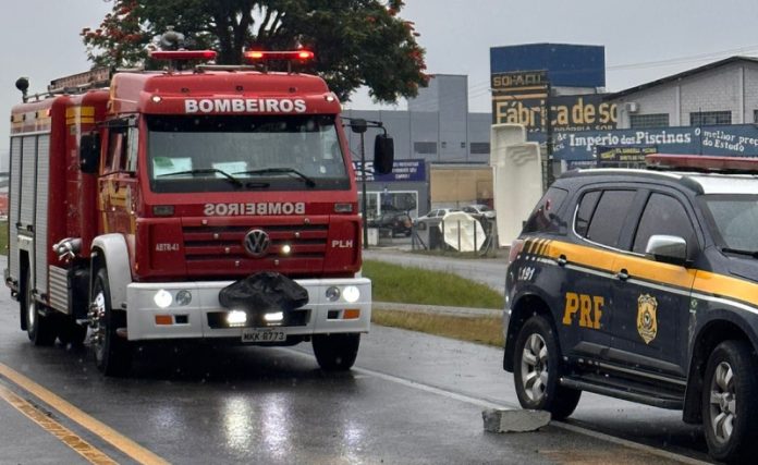 Nesta sexta-feira, 23, pela manhã, o motorista de um caminhão perdeu o controle, devido à pista escorregadia e acabou colidindo contra algumas proteções de concreto em um desvio na rodovia. A ocorrência aconteceu na BR-282, próximo ao depósito de um supermercado da região. Com a colisão, acabou houve derramamento de óleo na pista, em que a Polícia Rodoviária Federal (PRF) precisou interromper o fluxo de veículos parcialmente para que o Corpo de Bombeiros Militar de Santa Catarina (CBMSC) colocasse serragem na pista, evitando novos acidentes no local.
