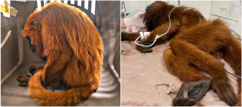 O primata foi então atendido no Hospital Veterinário HCVB, onde recebeu os primeiros tratamentos para estabilizar sua condição.