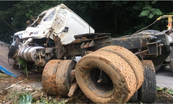 Segundo a PMRv (Polícia Militar Rodoviária), o caminhão carregado de argila descia a serra quando perdeu o freio, invadiu a pista contrária bateu na defensa e capotou. Ele parou em uma área às margens da rodovia.
