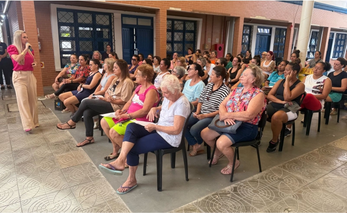 Além disso, a terapeuta Gisele Tursen apresentou uma palestra motivacional, abordando temas como autoestima e equilíbrio emocional, destacando a importância do bem-estar mental na rotina das mulheres.