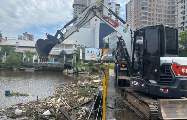 Nesta sexta-feira (14), a Defesa Civil e a Secretaria de Obras de Itapema, com suporte das Guardas Municipais de Itapema e Porto Belo, realizaram uma limpeza na ponte balsa sobre o Rio Perequê. A ação teve como foco a remoção de resíduos sólidos acumulados após fortes chuvas recentes.
