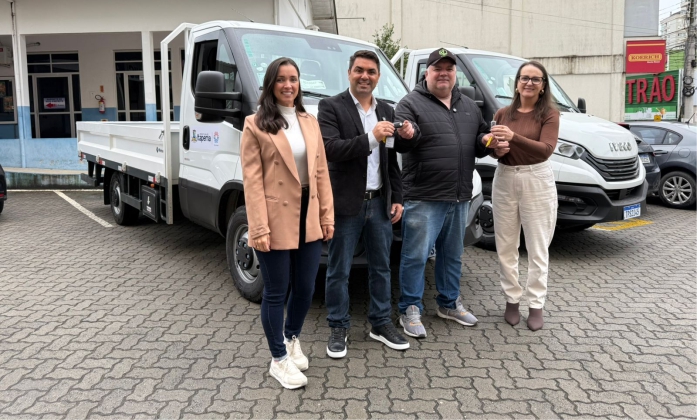 Nesta segunda-feira, 4, a Prefeitura de Itapema entregou dois caminhões Iveco 35‑160 à Secretaria de Obras e Serviços Públicos. A cerimônia aconteceu no Paço Municipal, com a presença do prefeito Alexandre Xepa e do secretário Jean Idimar.