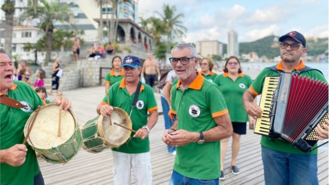 O Grupo Boi de Mamão Raiz da Terra, de Itapema, segue com as gravações do documentário ‘Boi de Mamão, preservação da Cultura Local’ que visa mostrar a tradição sendo apresentada em pontos turísticos da cidade. A primeira etapa das gravações aconteceu no Canto da Praia. Os integrantes mais antigos da tradição também já estiveram reunidos para prestar depoimento sobre essa cultura. Neste último domingo (20/02), a apresentação aconteceu na praia do Centro, próximo a Ponte do Suspiro.