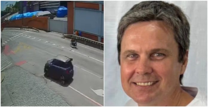 Imagens captadas por câmeras de segurança mostram o carro trafegando em velocidade pela via, quando o motorista perde o controle da direção e atinge violentamente um muro. Após o impacto, o veículo ainda capota na pista.