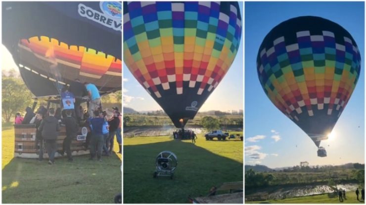 VÍDEO – Tragédia em Praia Grande: balão turístico incendeia-se e cai durante passeio