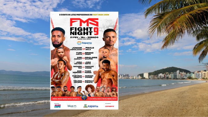 Itapema se prepara para viver uma noite dedicada ao boxe profissional. No dia 21 de fevereiro, a Arena Viva Verão será palco da 9ª edição do FMS Fight Night, evento organizado pelo Fight Music Show que reunirá atletas de diferentes regiões do país. A programação inicia às 18h e contará com oito combates profissionais, com transmissão ao vivo para todo o Brasil pelo Canal Combate.