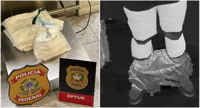 Na segunda-feira (7), um homem de 23 anos foi detido no Aeroporto Hercílio Luz, em Florianópolis, ao tentar embarcar para Paris com cerca de três quilos de cocaína amarrados nas pernas e coxas. O suspeito, natural de São José, chamou a atenção por comportamento tenso e revista revelou os pacotes escondidos sob roupas.