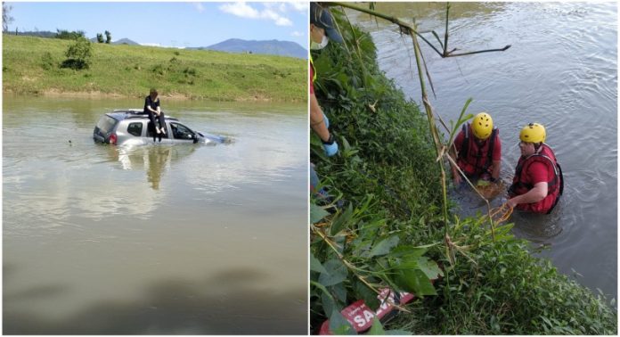 Na tarde desta quarta-feira (15), um Renault Duster caiu no rio Itajaí-Mirim, em Brusque, no bairro Rio Branco, por volta das 14h. O motorista, um jovem de 18 anos, ficou ilhado sobre o teto do automóvel enquanto aguardava o socorro.