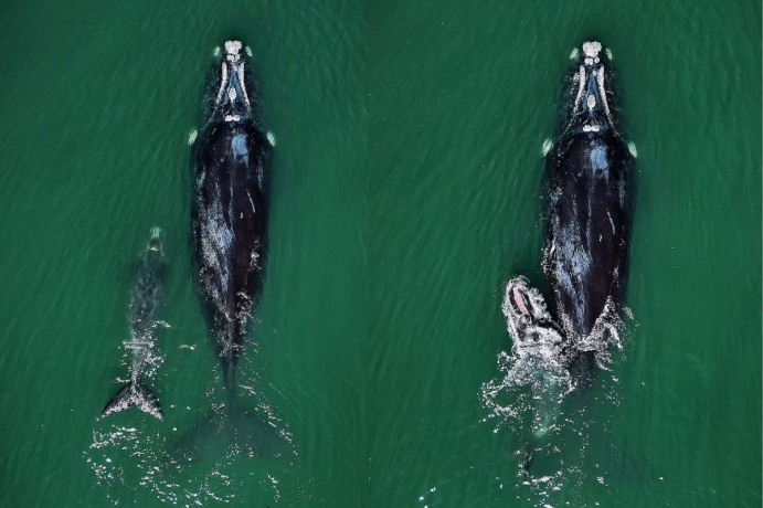 Flagrante a 3 km da costa registra momento de cuidado e ternura da espécie ameaçada