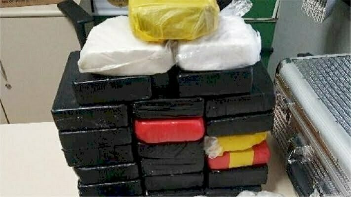Durante averiguação, a guarnição notou que a dupla estava muito nervosa, momento em que a PM, com autorização do proprietário da barbearia, realizou uma varredura no local. Na oportunidade, foram encontradas uma mala prata com senha e uma caixa de papelão. Dentro delas foram localizadas 23.862 quilos de cocaína, dois celulares e uma faca
