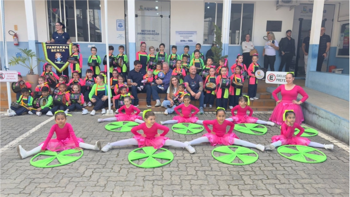 Nesta segunda-feira (15), o Paço Municipal de Itapema foi palco de uma apresentação marcante: a mini fanfarra do CMEI Benta Pereira Florência encantou servidores, professores e visitantes com música, ritmo e alegria.