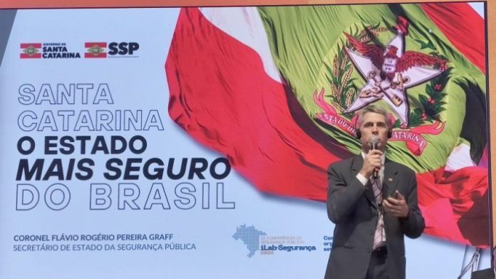 O secretário da Segurança Pública de Santa Catarina, coronel Flávio Graff, participou do painel “Projetos de modernização”, com a palestra “Santa Catarina, o estado mais seguro do Brasil”. Graff apresentou os resultados alcançados pelo Estado em 2025, que consolidam a posição de destaque nacional decorrente dos baixos índices de criminalidade.