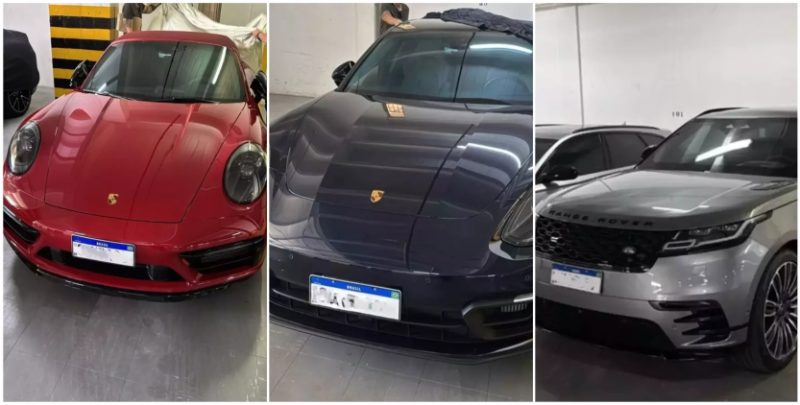 Entre os veículos confiscados estão modelos de alto padrão, como um Porsche 911, avaliado em R$ 1,2 milhão, um Porsche Panamera de R$ 766 mil, uma BMW M3 Competition de R$ 638 mil, uma Land Rover de R$ 430 mil, um Audi RS6 de R$ 378 mil e uma BMW M135 de R$ 253 mil.
