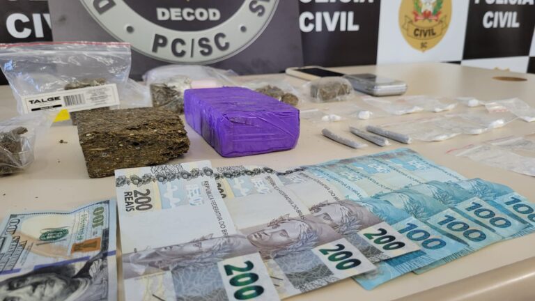 A Polícia Civil de Santa Catarina, por meio da Delegacia de Combate às Drogas da Capital (DECOD), em conjunto com a Guarda Municipal de Florianópolis (GMF), prenderam em flagrante um homem por tráfico de drogas, na Capital. Após investigação e monitoramento, o suspeito foi abordado no Terminal Integrado de Santo Antônio de Lisboa, momento em que foi encontrado em sua posse diversas porções de cocaína e um torrão de maconha, cigarros de maconha e uma balança de precisão.