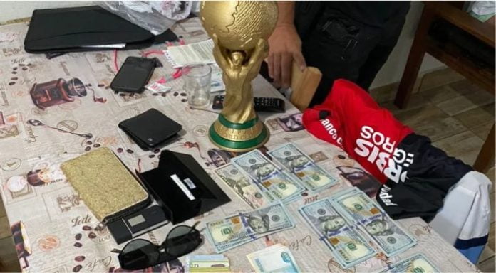 Com endereço e identificação do grupo, a polícia cumpriu mandado de busca e apreensão e encontrou a maior parte do dinheiro furtado dos turistas russos, além de uma réplica da taça da Copa do Mundo FIFA que estava com um dos suspeitos no logo após o furto.
