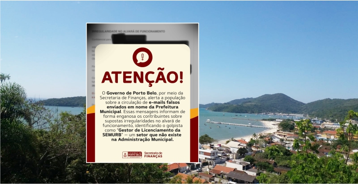 A Prefeitura de Porto Belo alerta os cidadãos sobre e-mails fraudulentos que simulam notificações oficiais relacionadas a alvarás de funcionamento.