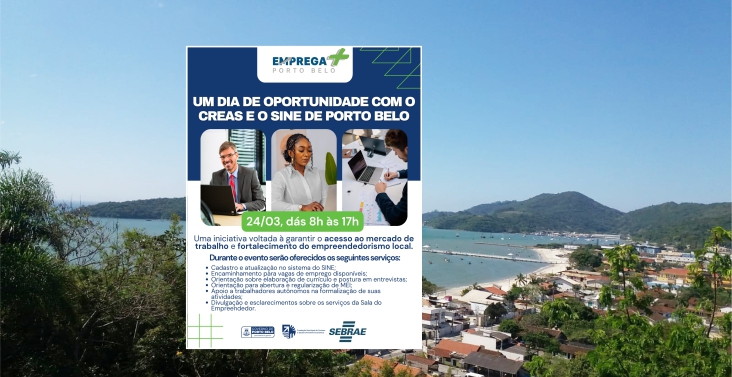O Governo de Porto Belo realiza, no dia 24 de março, das 8h às 17h, o Dia de Oportunidades, evento voltado à geração de emprego, qualificação profissional e incentivo ao empreendedorismo no município.
