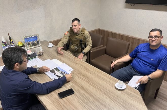 O prefeito de Porto Belo Joel Lucinda e o secretário de Segurança Pública Juarez Barbosa estiveram em reunião nesta semana com o tenente da Polícia Militar de Porto Belo, Rodolfo Knies, que apresentou o projeto para o novo batalhão da cidade.