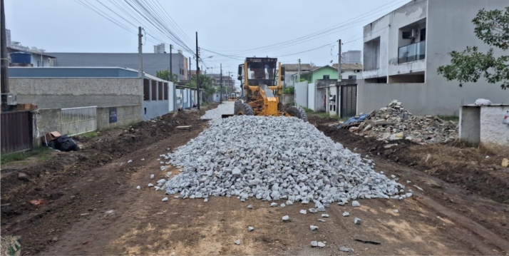 A obra de requalificação da Rua São Paulo continua avançando em Porto Belo e chega a uma nova etapa importante para a melhoria da via. No momento, equipes trabalham na preparação da base para a pavimentação asfáltica no trecho que liga a Avenida Hironido Conceição dos Santos à Avenida Governador Celso Ramos.