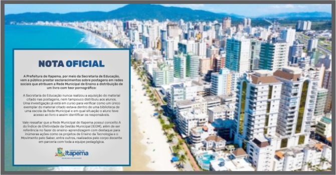 A Prefeitura de Itapema, por meio da Secretaria de Educação, vem a público prestar esclarecimentos sobre postagens em redes sociais que atribuem a Rede Municipal de Ensino a distribuição de um livro com teor pornográfico: