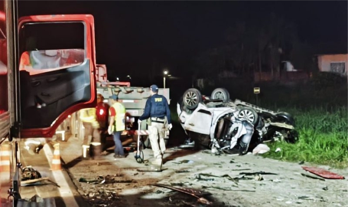 Na noite de segunda-feira (16), um grave acidente na BR-280, em Araquari, resultou na morte de três ocupantes de um Hyundai HB20, com placas de Joinville. A colisão, que ocorreu por volta das 23h24 no km 21 da rodovia, envolveu um caminhão com placas de Rio Negrinho, cujo motorista, de 46 anos, saiu ileso.