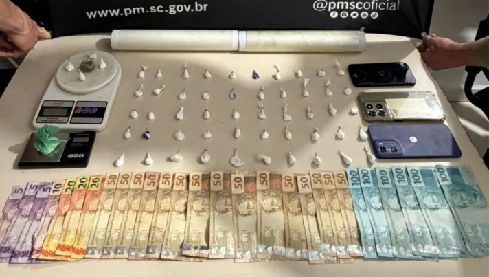Ação da Polícia Militar começou após denúncia de morador e terminou com apreensão de cocaína, dinheiro e diligências em São João Batista