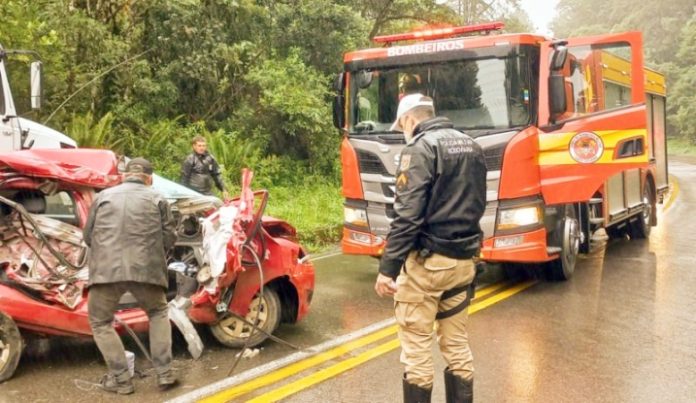 O motorista e a passageira do carro ficaram gravemente feridos e foram encaminhados ao hospital em São Bento do Sul