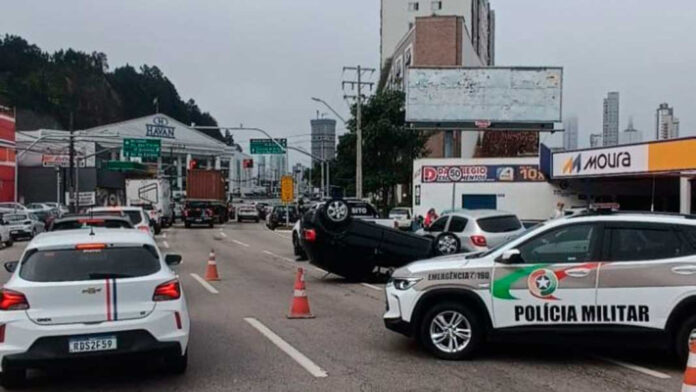 Na tarde desta segunda-feira (23), um acidente ocorreu na Avenida do Estado, em Balneário Camboriú, quando um motorista de 29 anos capotou seu carro após sofrer um mal súbito. Segundo informações da Polícia Militar, o condutor relatou ter perdido o controle do veículo ao sentir-se repentinamente mal, o que o levou a colidir com outros carros estacionados na via.