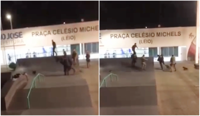 O Samu e a Polícia Militar foram chamados para prestar socorro, mas o animal voltou a investir, mordendo a mão de um socorrista durante o atendimento. O profissional precisou se proteger subindo a rampa de skate, enquanto o cão continuava a avançar.