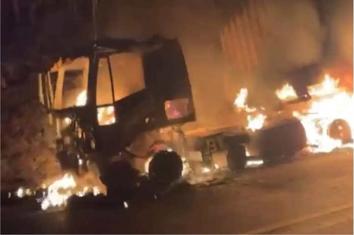 Incêndio atinge carreta e bloqueia a BR-282. Foto: Reprodução