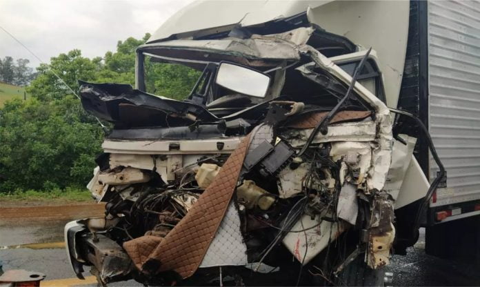 O motorista de um caminhão baú bateu violentamente contra a lateral de uma carreta bitrem e ficou preso às ferragens no início da tarde desta sexta-feira (2) na SC-161, em Flor do Sertão, no Extremo-Oeste de Santa Catarina.