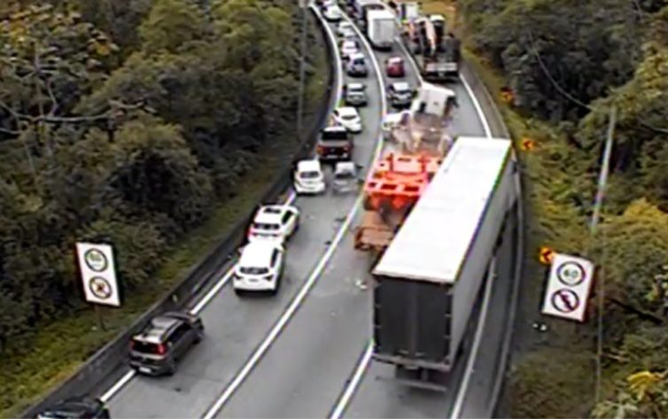 Segundo a Arteris Litoral Sul, concessionária que administra o trecho, a colisão aconteceu por volta das 11h15, no quilômetro 666, do sentido sul da rodovia.