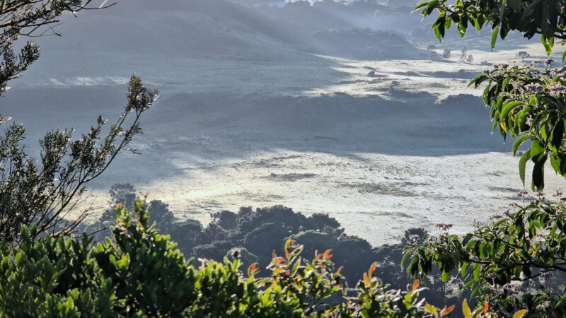 Nesta quarta-feira, 13 de novembro, moradores e visitantes de São Joaquim, na Serra Catarinense, foram surpreendidos por uma geada incomum para a época do ano, trazendo uma camada de gelo ao Vale Caminhos da Neve. O fenômeno, que geralmente ocorre nos meses de inverno, registrou temperaturas próximas a 2°C nas áreas mais elevadas da cidade, segundo a Epagri/Ciram. Na estação do Instituto Nacional de Meteorologia (INMET), próximo ao centro, os termômetros chegaram a marcar -0,3°C, valores inusitados para o mês de novembro.