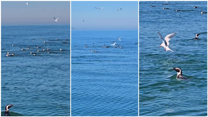 Na manhã desta quinta-feira (14), moradores de Laguna, no Litoral Sul de Santa Catarina, foram surpreendidos por uma megacolônia de pinguins-de-Magalhães nas águas próximas ao Farol de Santa Marta. O empresário e surfista João Baiuka, que estava pescando na região, registrou o momento em vídeo, destacando a quantidade impressionante de aves marinhas. “Eu acho que é uma das maiores colônias de pinguins que já transitaram neste inverno por aqui. Quanta natureza, galera! Deve ter, no mínimo, uns 300”, comentou Baiuka em sua publicação.
