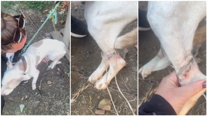 Cachorrinha foi encontrada amarrada e desnutrida; tutor pode responder por crime ambiental